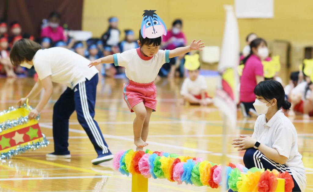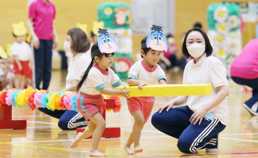 お友だと一緒に行う競技では、力を合わせて協力しながら行う姿が見られます。