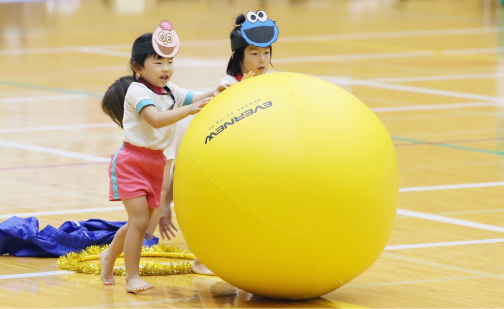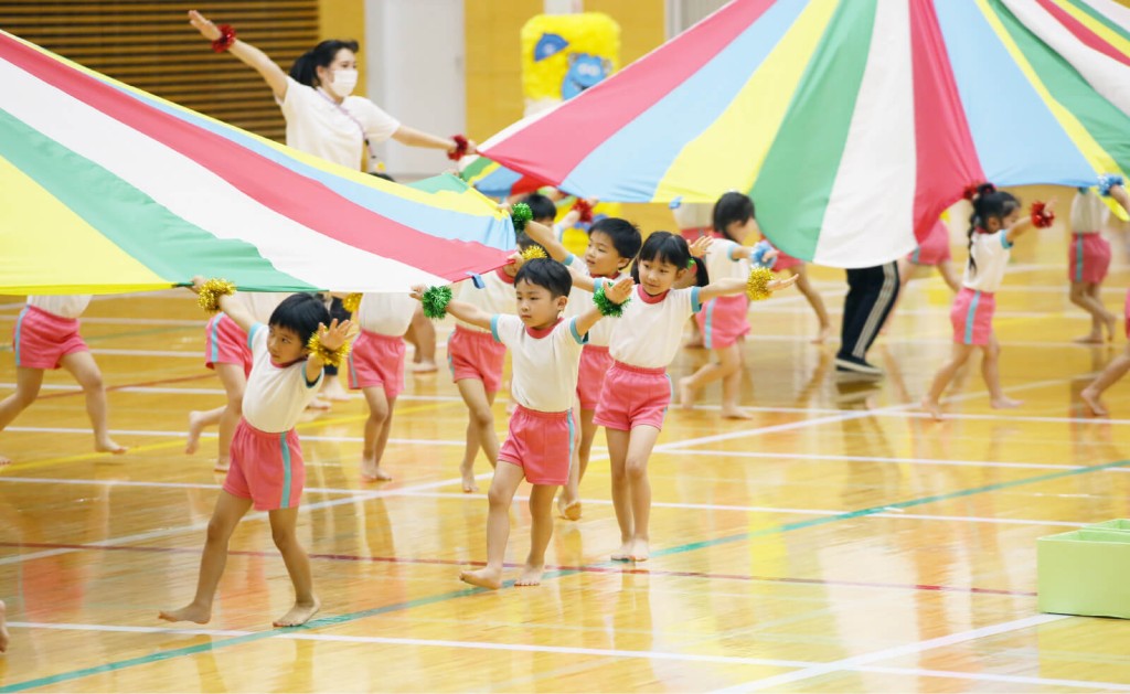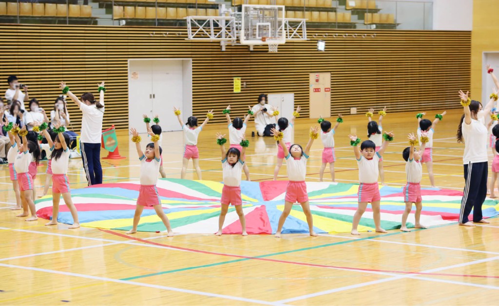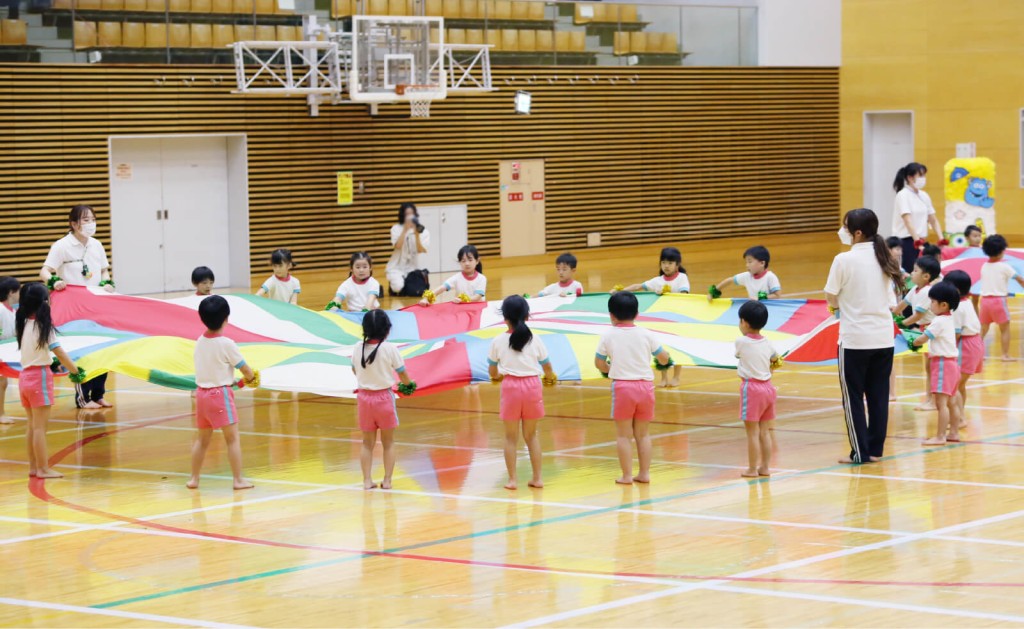 音楽に合わせ、お友だちと協力しながら、パラバルーンを披露してくれます。