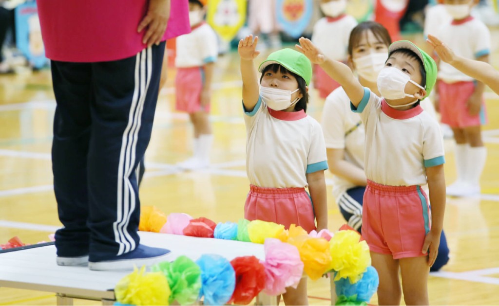 みんなで元気良く、ハトポッポ体操をして体を動かします。