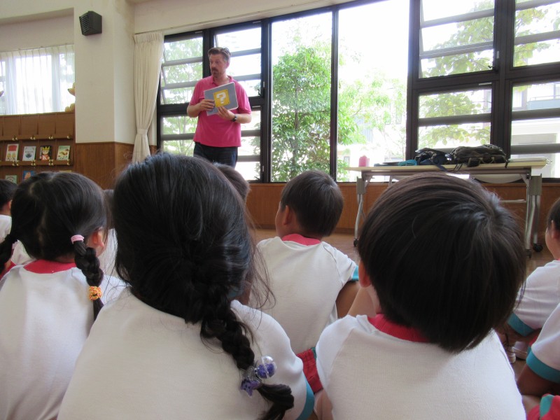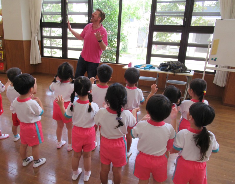 食べ物の名前を教えてもらうと、みんなで食べたふりをして、