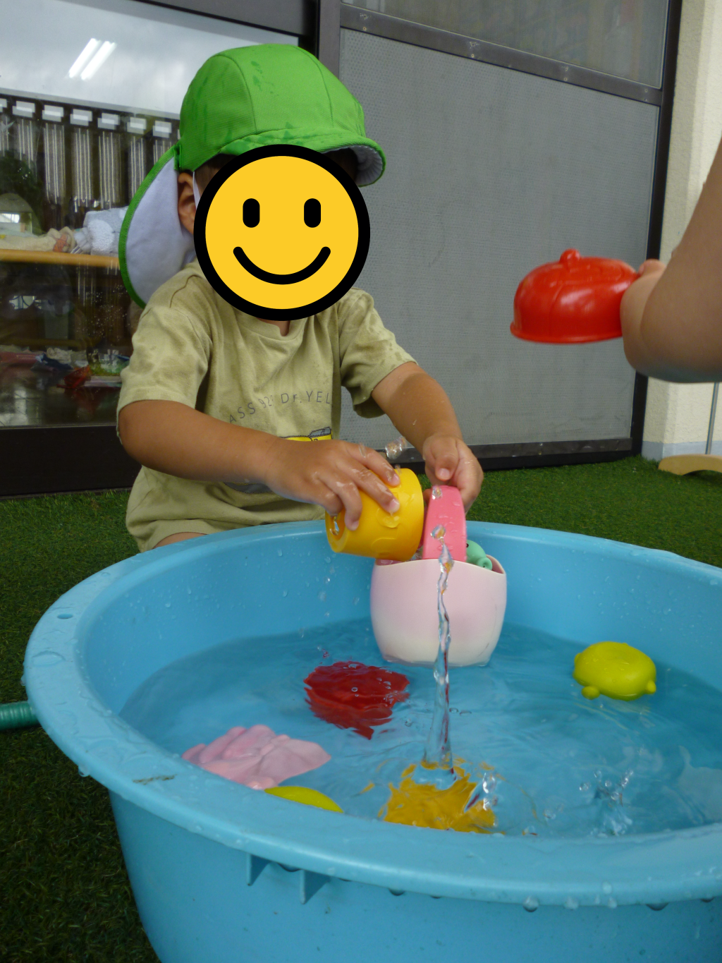 プール遊び(3~5歳児)・水遊び(0~2歳児)が始まりました♬