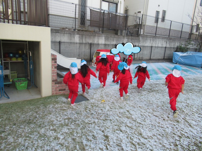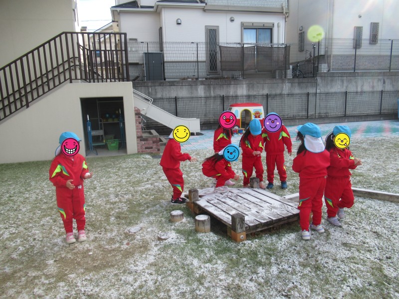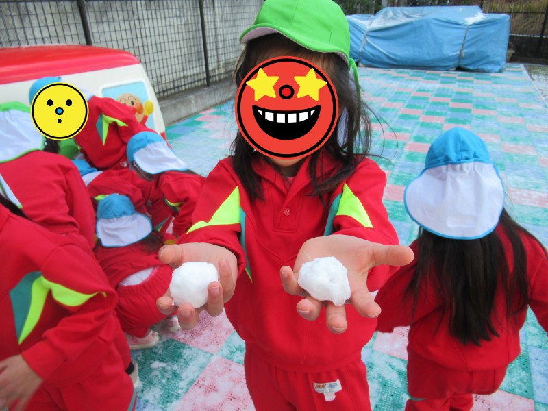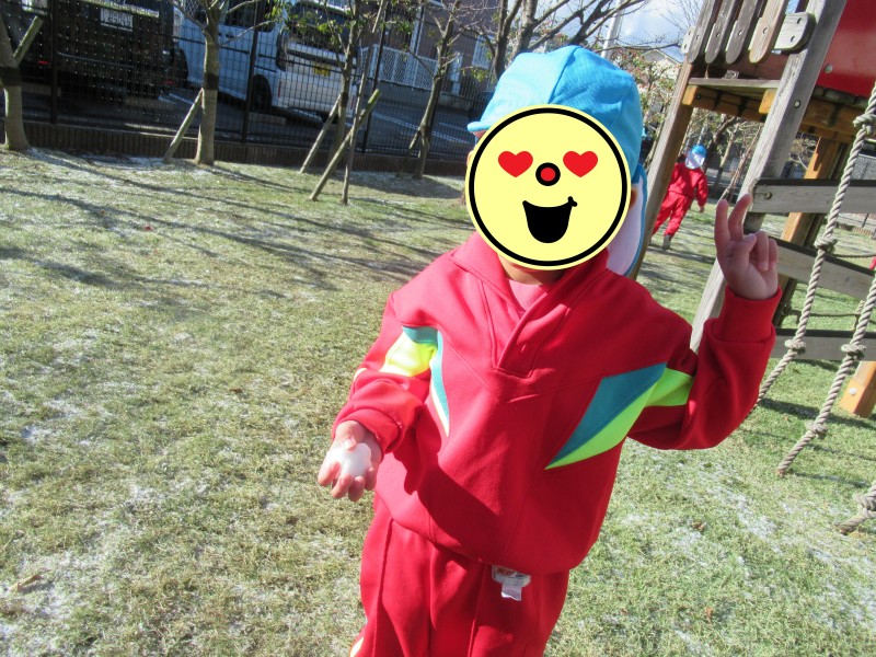 園庭に雪が積もっていたので、みんなで雪遊びをしました★