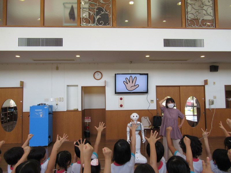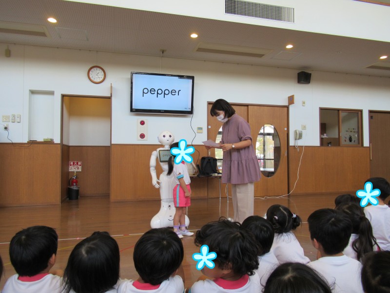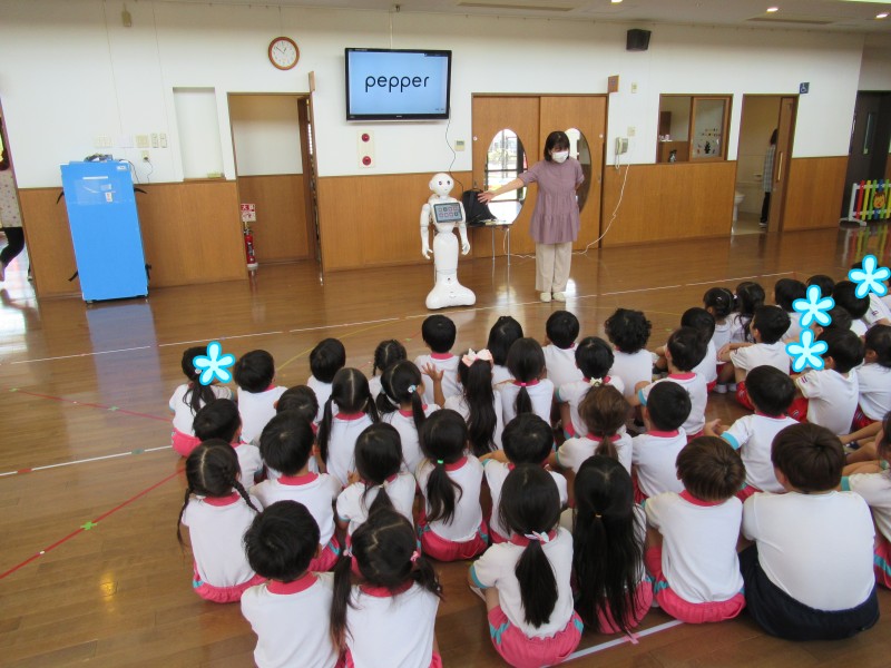 今日は、ソフトバンクさんが園に来てくれ、「PepperくんのSDGs講座」がありました♪