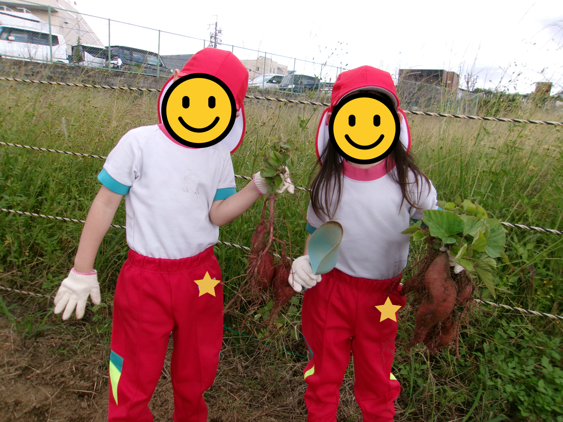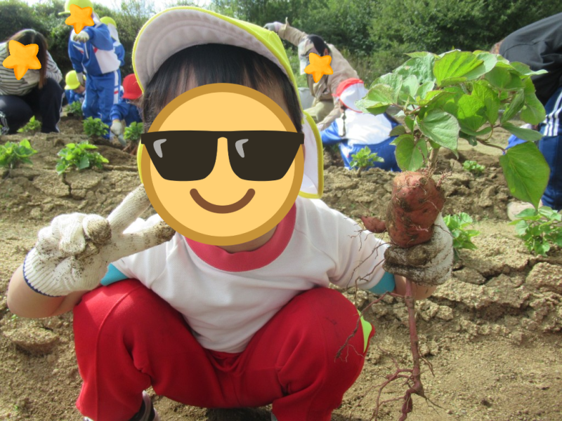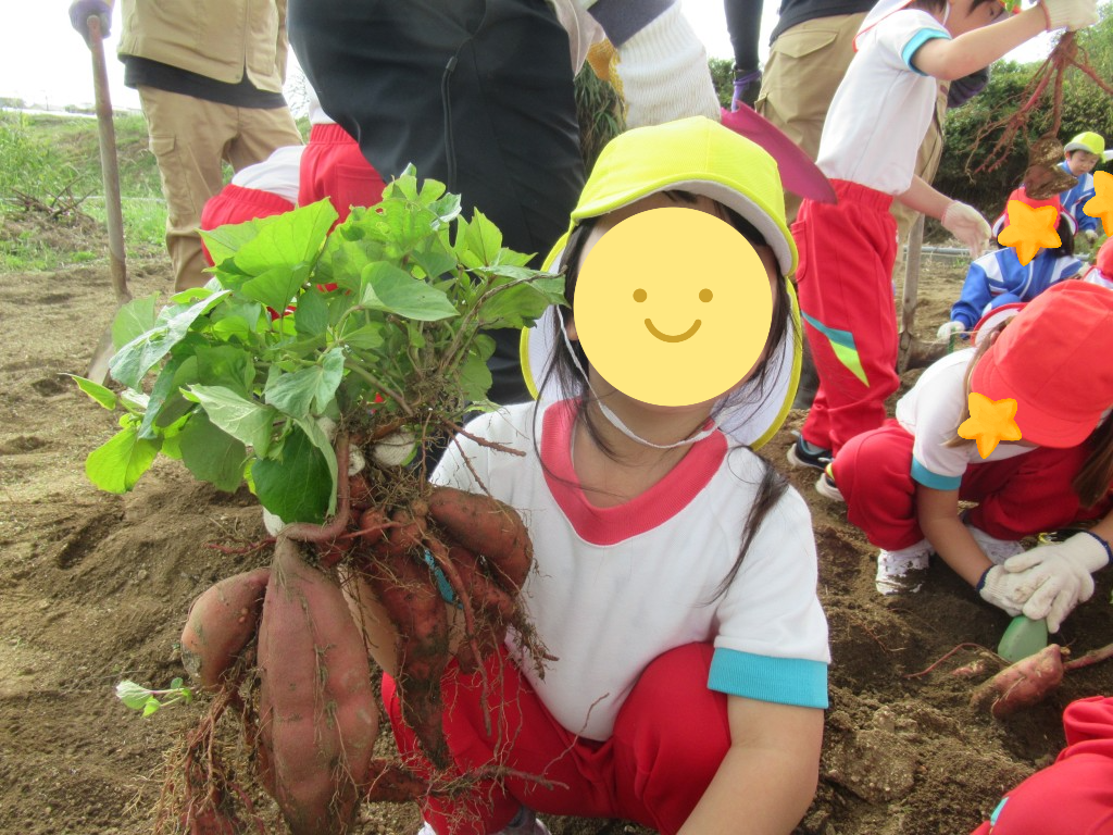 土を一生懸命掘って、「おいもみえてきたー!」「ぬけたー!!」と大喜びの子どもたちでした♡