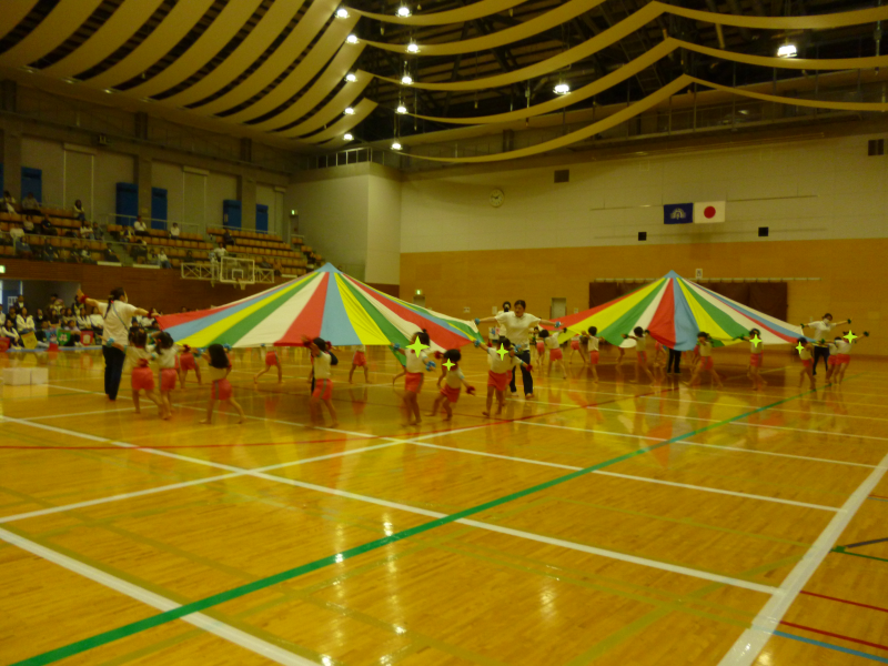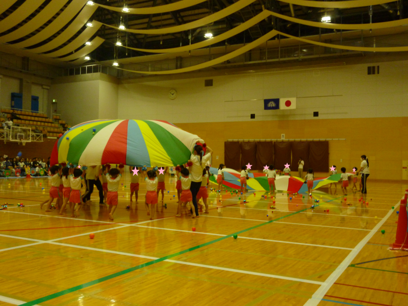 かけっこ・パラバルーン・園対抗リレー、全力で楽しみました。